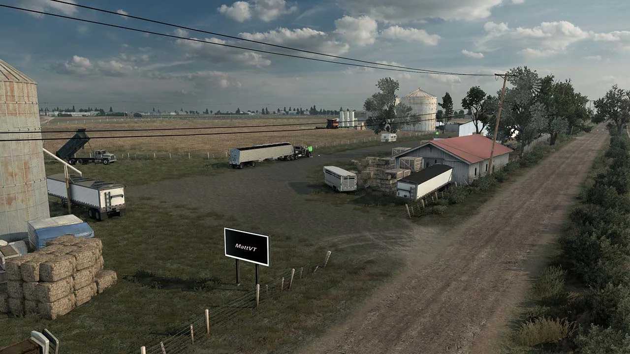 Welcome to first farm yard featuring my new company, MattVT Farms! This first farm is mainly grain and cattle focused. Expect to pick up loads like Wheat, Dairy, Cattle, Harvesters, Tractors ect… trailers with custom loads won’t be able to pick up jobs at this new company, but I’ve already contacted all the major trailers modders to see if I can add their loads. I’ll update the yard with more trailer compatibility as I get permission.