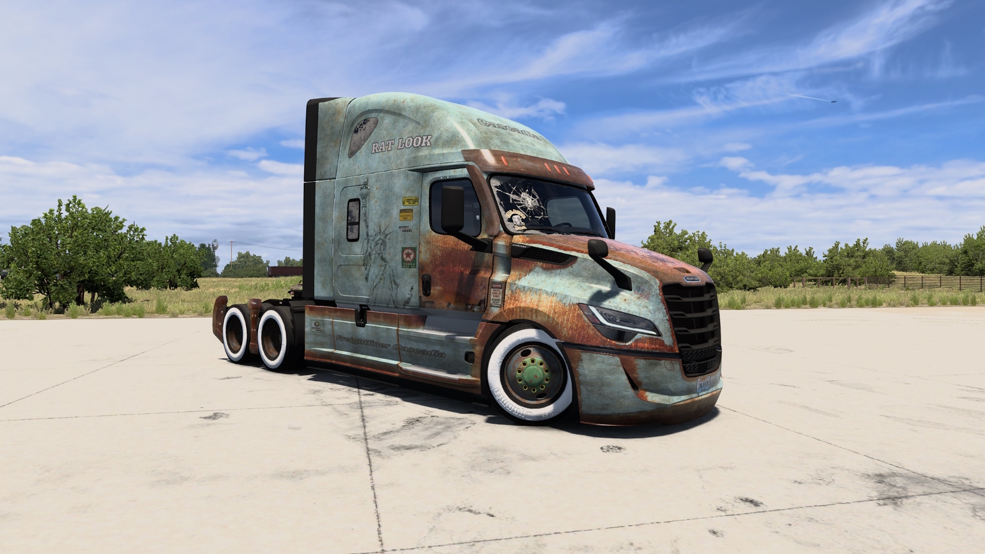 2024 Freightliner Cascadia in Rat-Look. Rat-look is a deliberate aging of a vehicle's body using special films or paints that mimic the effect of old rust, giving the vehicle a...