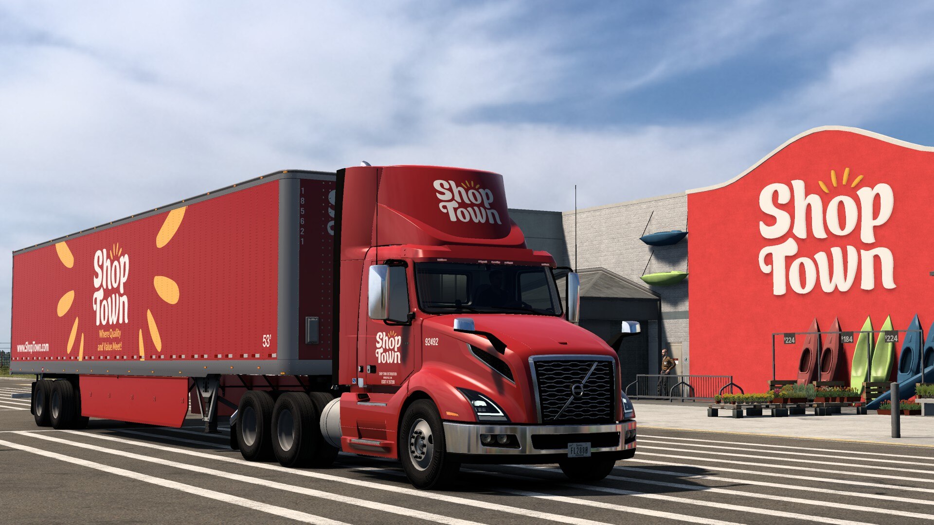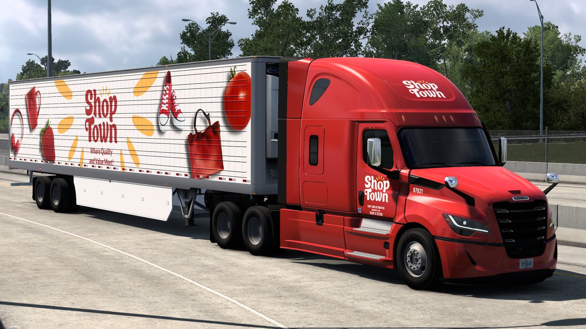 This mod includes skins from Shop Town, a fictional retail company in American Truck Simulator. Vehicles Included: Freightliner Cascadia 2019 & 2024 Volvo VNL 2014 & 2018 Kenworth T680 2014...