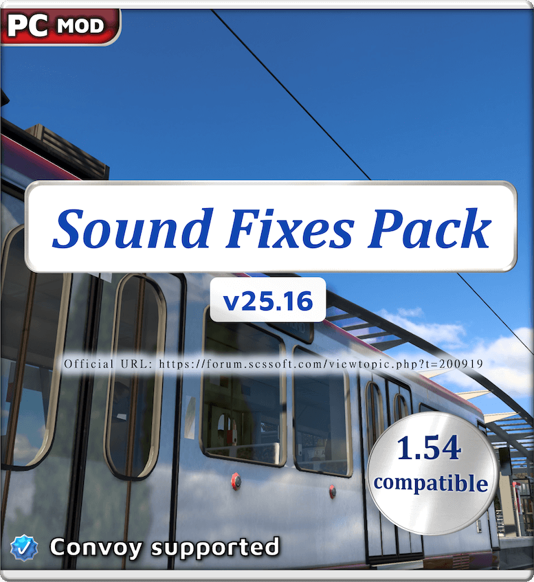 The SCS Forum link below for the Sound Fixes Pack holds all official download links and is open to suggestions and questions about the mod: