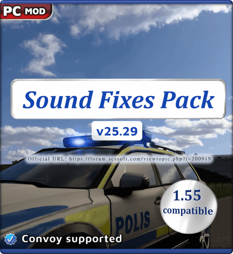 The SCS Forum link below for the Sound Fixes Pack holds all official download links and is open to suggestions and questions about the mod: