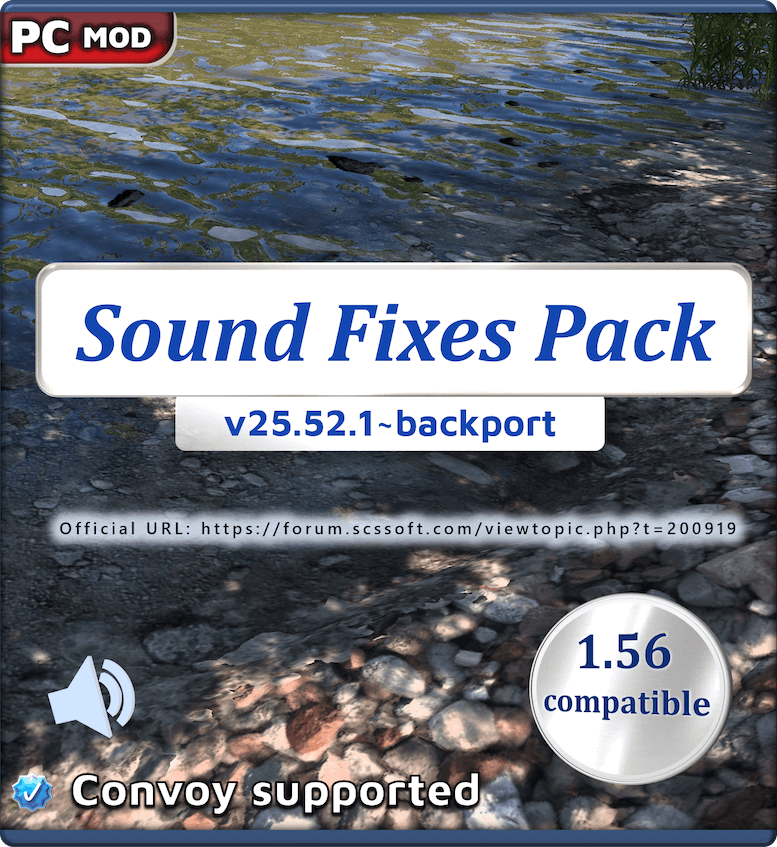 The SCS Forum link below for the Sound Fixes Pack holds all official download links and is open to suggestions and questions about the mod: