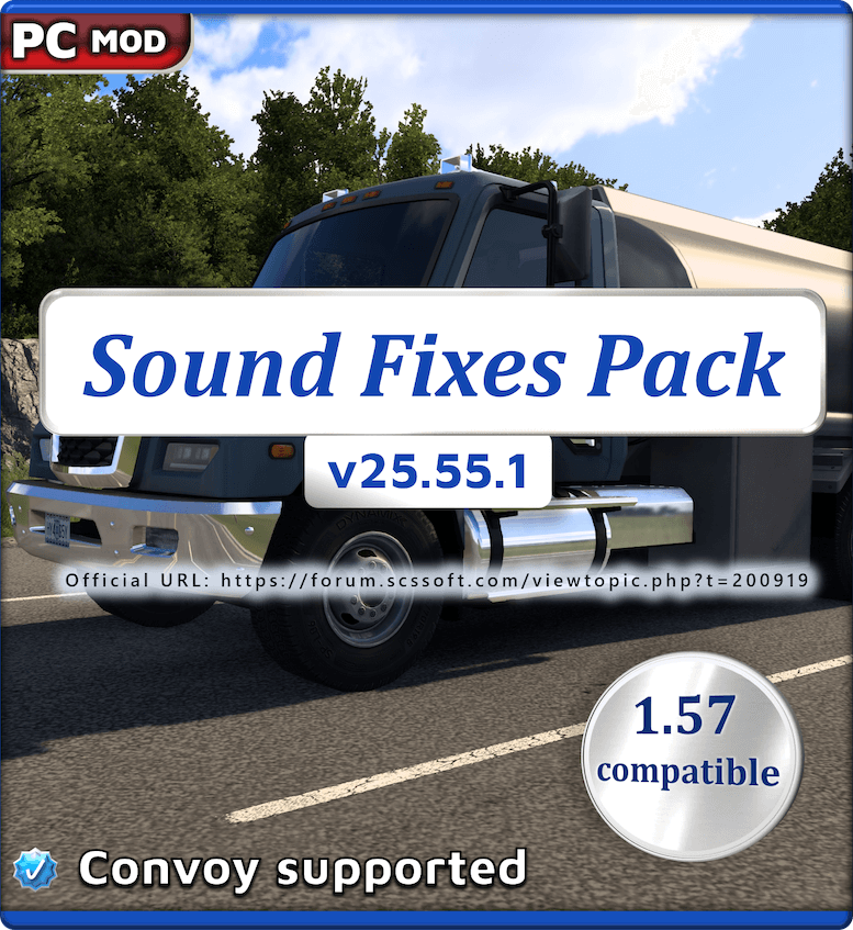 The SCS Forum link below for the Sound Fixes Pack holds all official download links and is open to suggestions and questions about the mod: