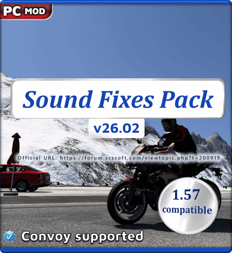 The SCS Forum link below for the Sound Fixes Pack holds all official download links and is open to suggestions and questions about the mod: